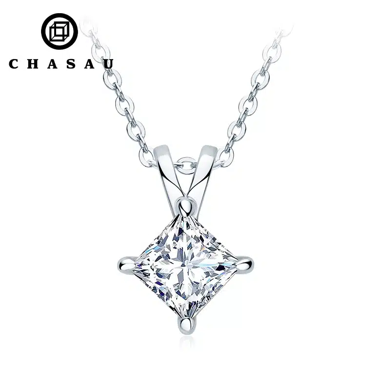 1 Carat D Color Moissanite Diamond Pendant Necklace 100% 925 Silver Princess Cut Simulated Engagement Chain Necklace