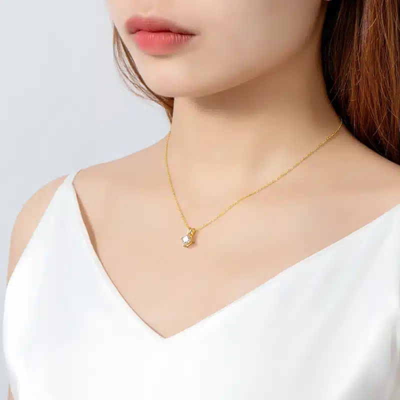 Key attributes Necklaces Type:Pendant Necklaces chain type:Link Chain Jewelry Main Material:Silver Main Stone:Moissanite Plating:Gold Plated, White Gold Plated Occasion:Other, Anniversary,