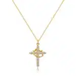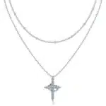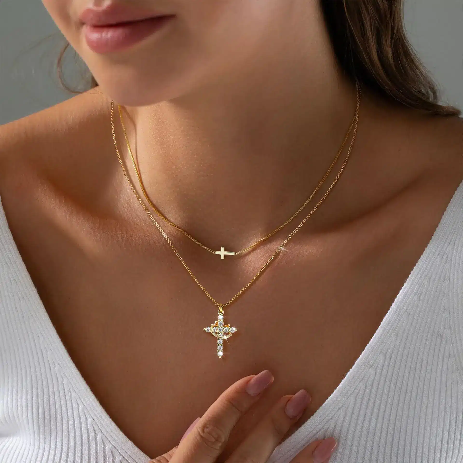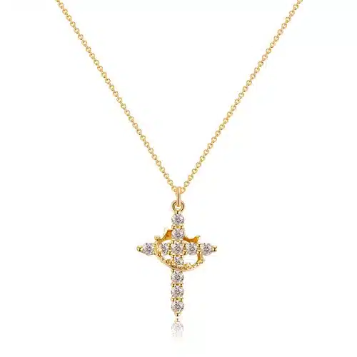 14k Gold Multistyle Layered Rotated Crown Necklace Cubic Zirconia Crown Cross Pendant Necklaces for Women