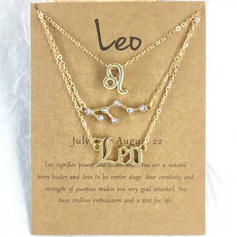 14K Gold Plated 12 Horoscope Zodiac Necklace With Card Pendant Charm Choker Necklace Jewelry Set for Women