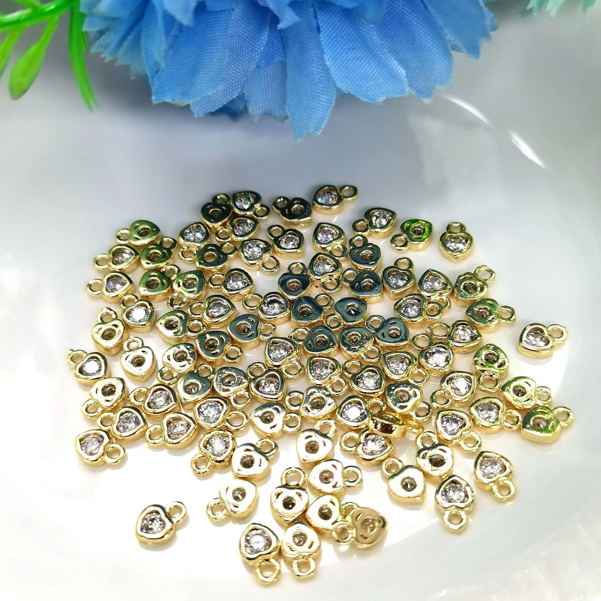 14k Gold Plated Gold Filled Cubic Zirconia Heart Non Tarnish Small Charms 5mm 6mm