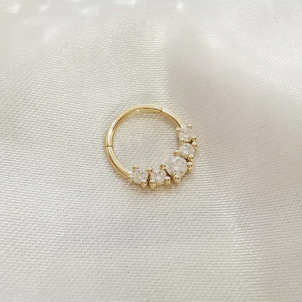 14K Solid Gold Body Jewelry Nose Rings for Women With Cubic Zirconia