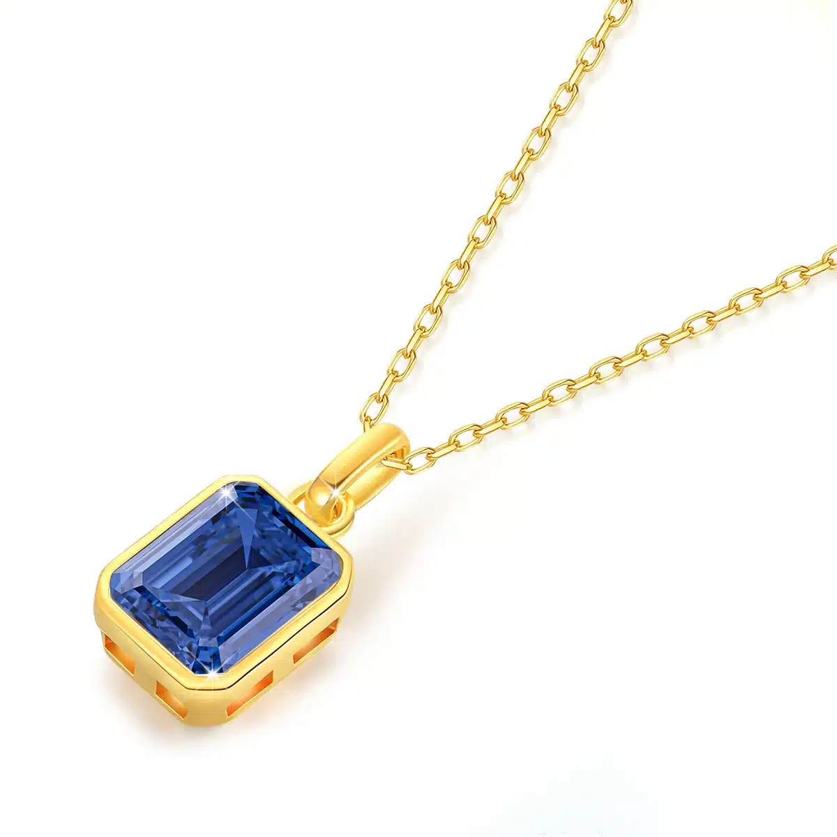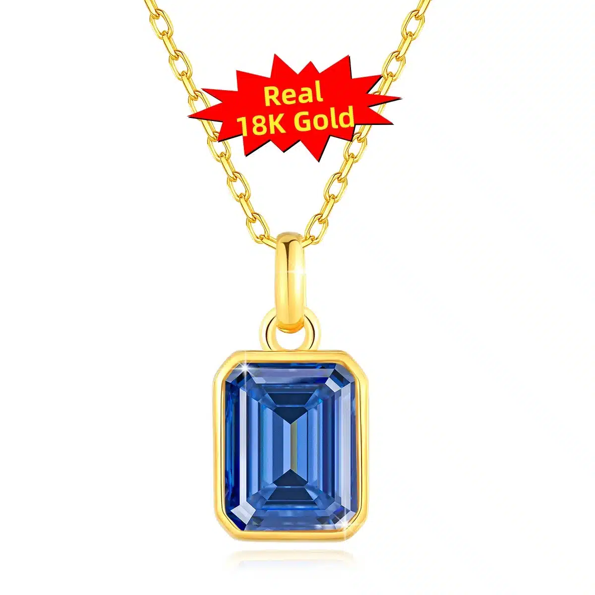 18K Au750 Gold Original Custom Aquamarine Sapphire Lab Grown Diamond Mothers Birthstone Pendant Necklace Waterproof