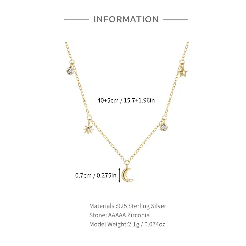 18K Gold Plated 925 Silver Dainty CZ Stone Zircon Paved Small Moon Star Tassels Necklaces for Women Jewelry