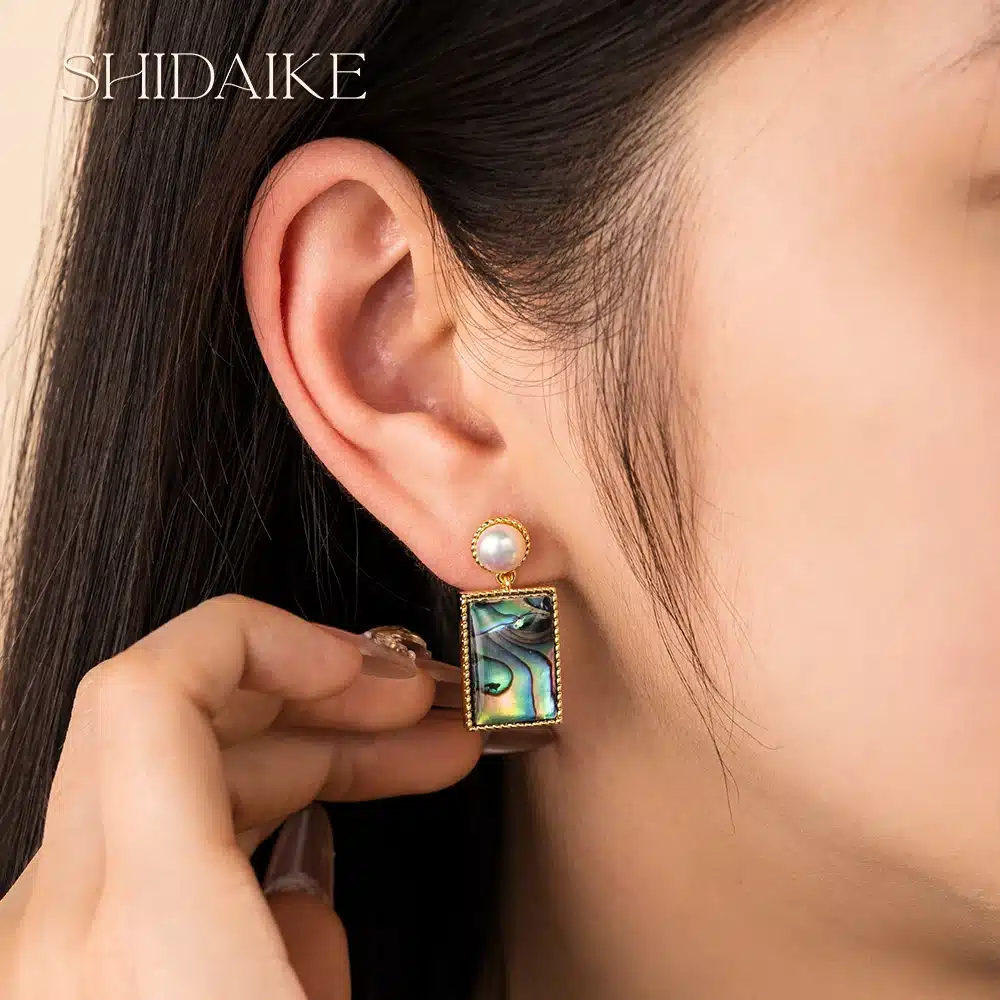 Be the first to review “18K Gold-Plated Heart-Shape Abalone Shell Freshwater Pearl Earrings New Micro-Inlaid Love Jewelry Brass Wedding Anniversary”