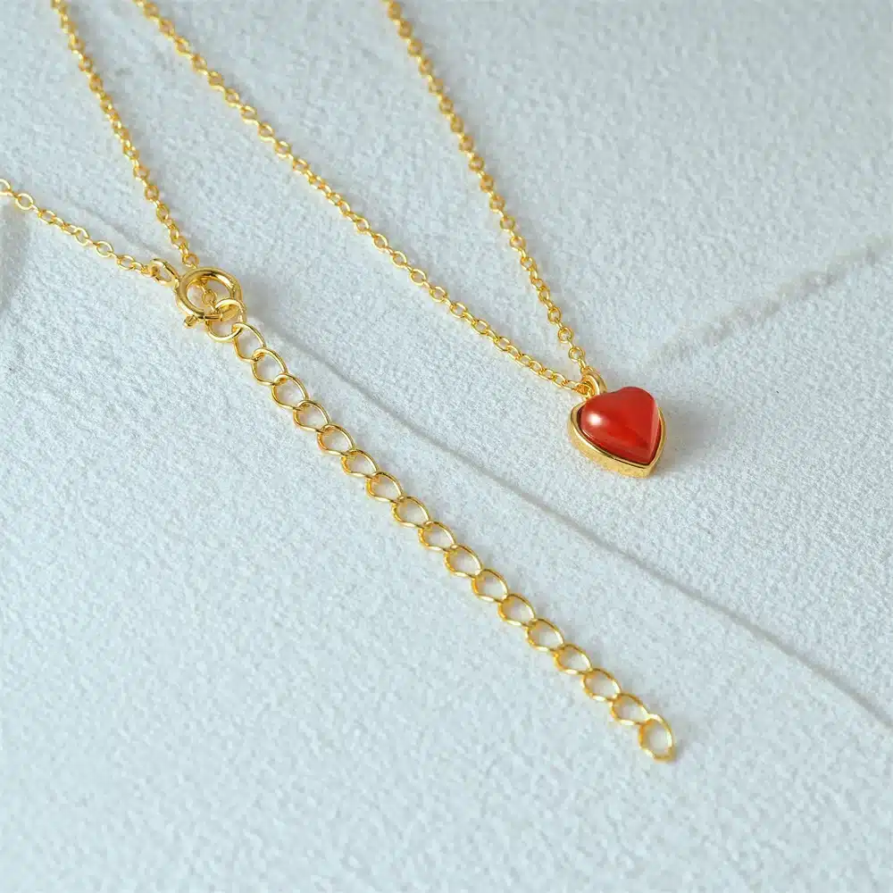 18K Gold Plated S925 Silver Jewelry Romantic Red Carnelian Agate Crystal Heart Valentine’s Day Gifts Pendant Necklace