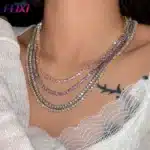 Hip Hop Chain Jewelry Heart Cz Necklace Iced Out 5Mm Handmade Setting High Quality Cubic Zirconia Tennis Necklace for Women Men