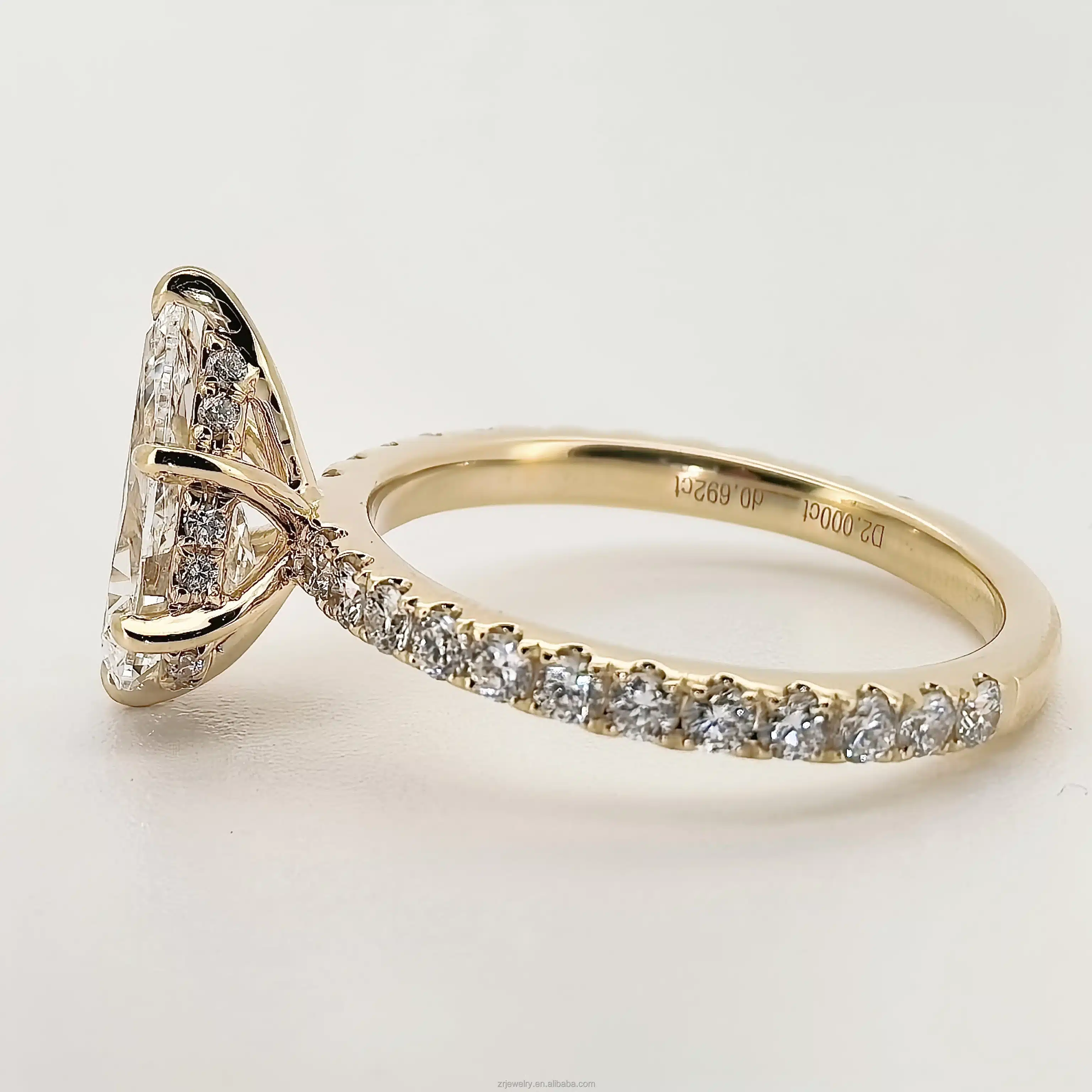 18K Gold Custom 2ct Moissanite Diamond Rings Customizable Oval Artificial Cultivated Powder Moissanite Ring