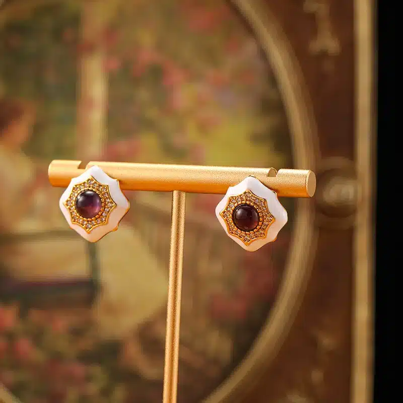 National Style New Chinese Enamel Flower Earrings for Women Retro Light Luxury Fashion Personality Trend All-Match Earrings