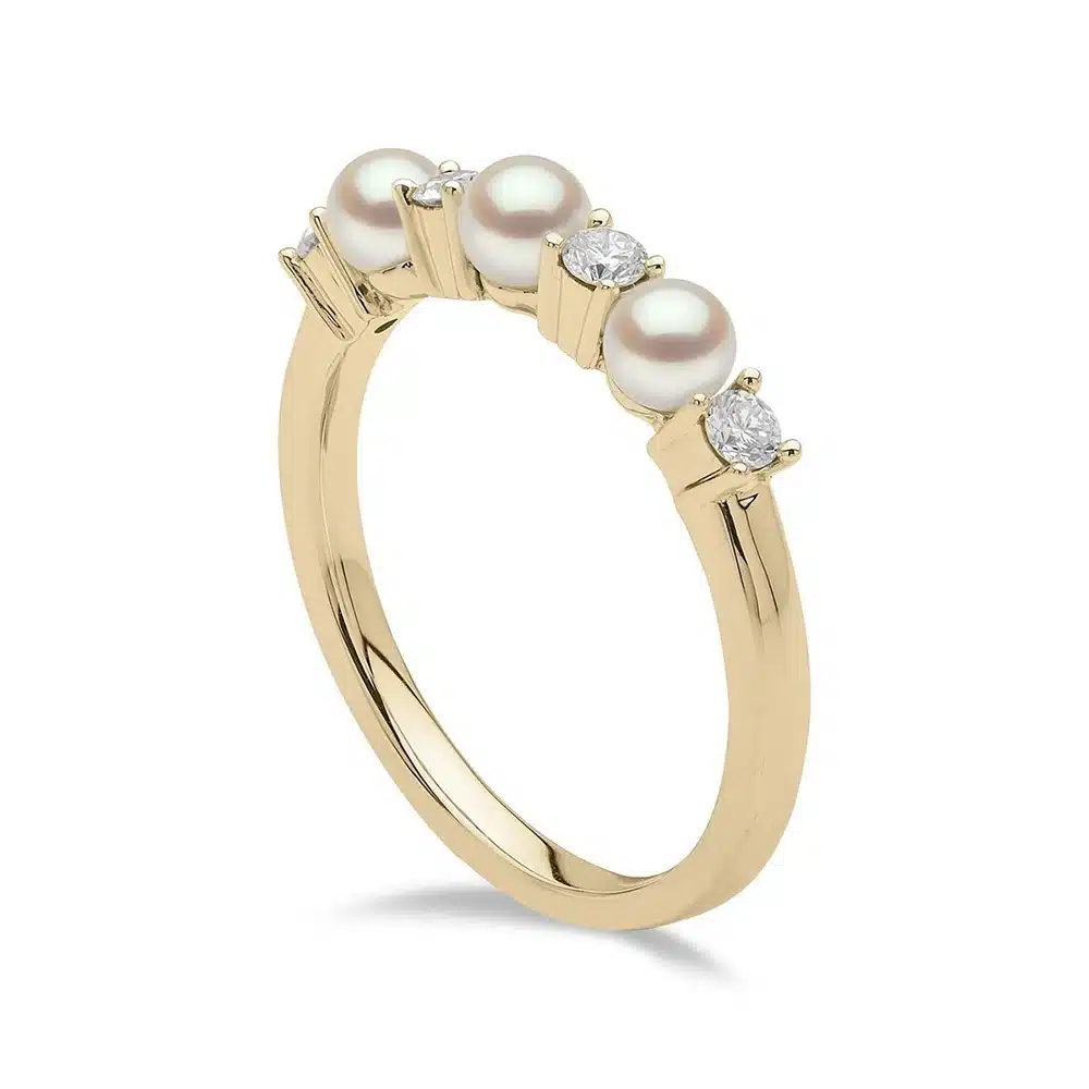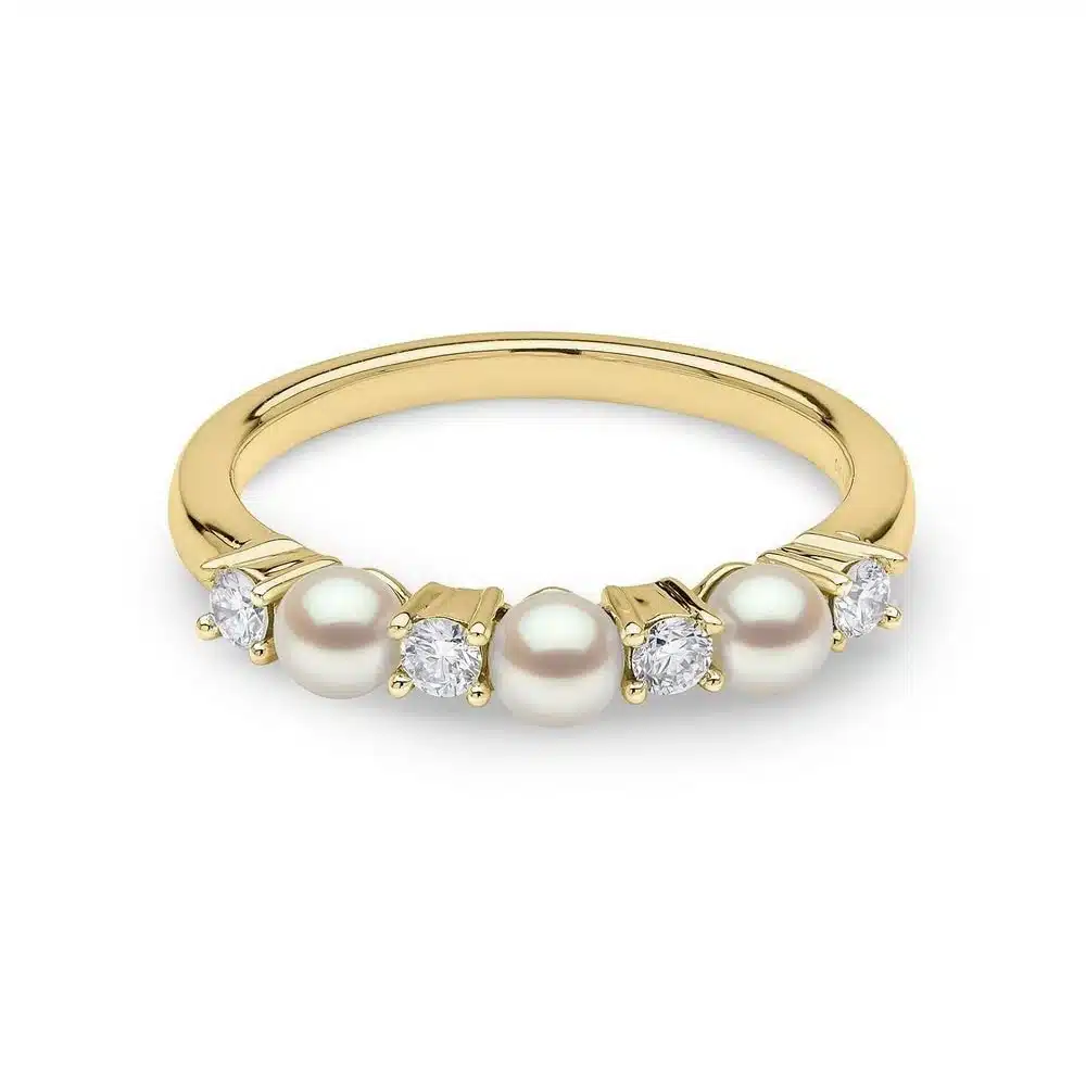 925 Silver Gold Plated Zircon Half Band Pearl Rings Jewelry Women