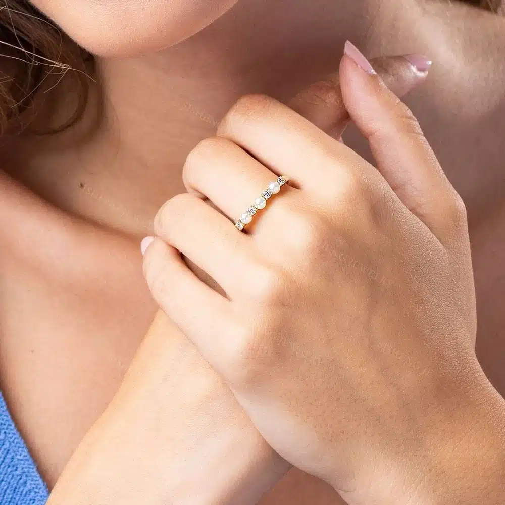 Be the first to review “925 Silver Gold Plated Zircon Half Band Pearl Rings Jewelry Women”