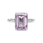 Excellent Emerald Cutting Gorgeous Rectangular Pink CZ Diamond Women White Diamond Wedding Ring