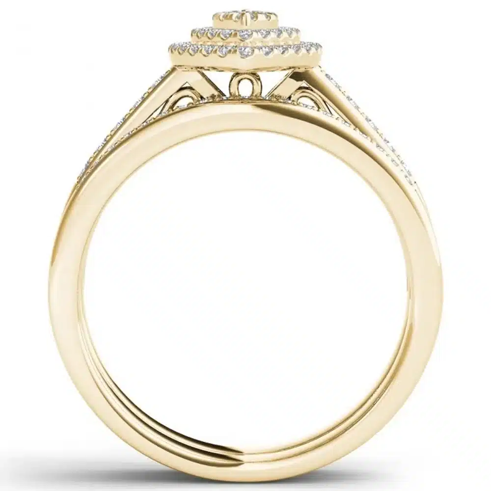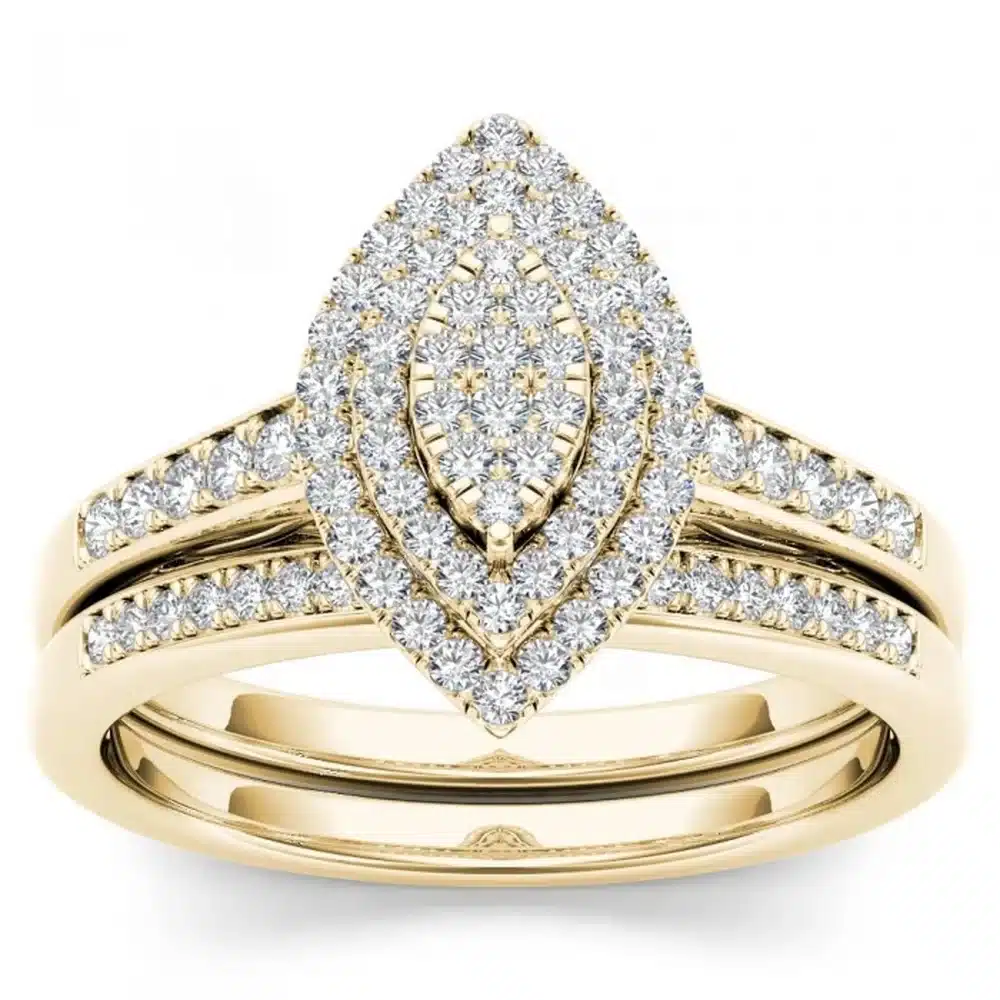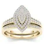 Be the first to review “925 Sterling Silver 14k Yellow Gold 13ct CZ Marquise Shape Halo Engagement Ring Set” Cancel reply
