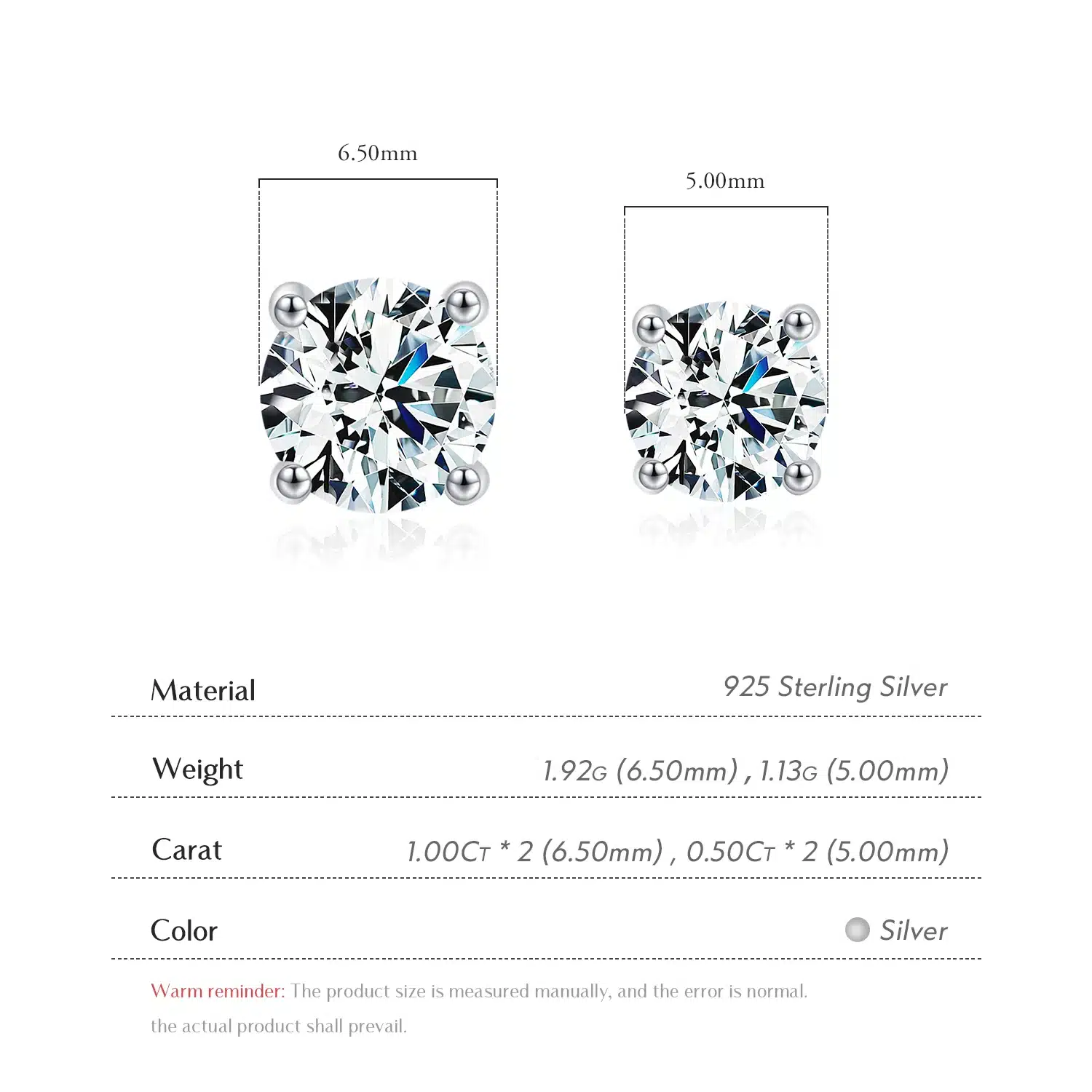 Key attributes Main Stone:Moissanite Earrings Type:Stud Earrings Plating:Rhodium Plated, Platinum Plated Style:Trendy Shape:Round Jewelry Main Material:Silver Occasion:Other, Gift, Party, Daily