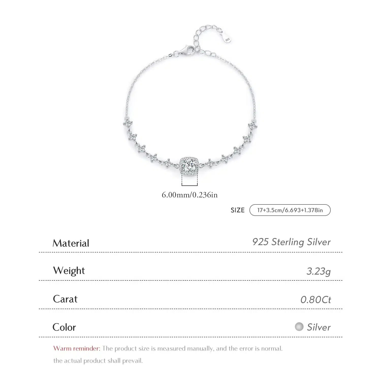 925 Sterling Silver Fashion Luxury Geometric Moissanite Charm Bracelet for Women Wedding Engagement Statement Jewelry