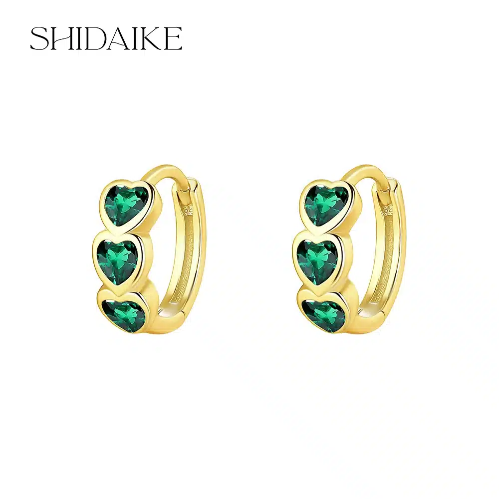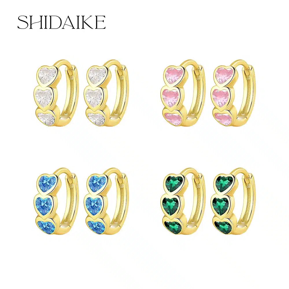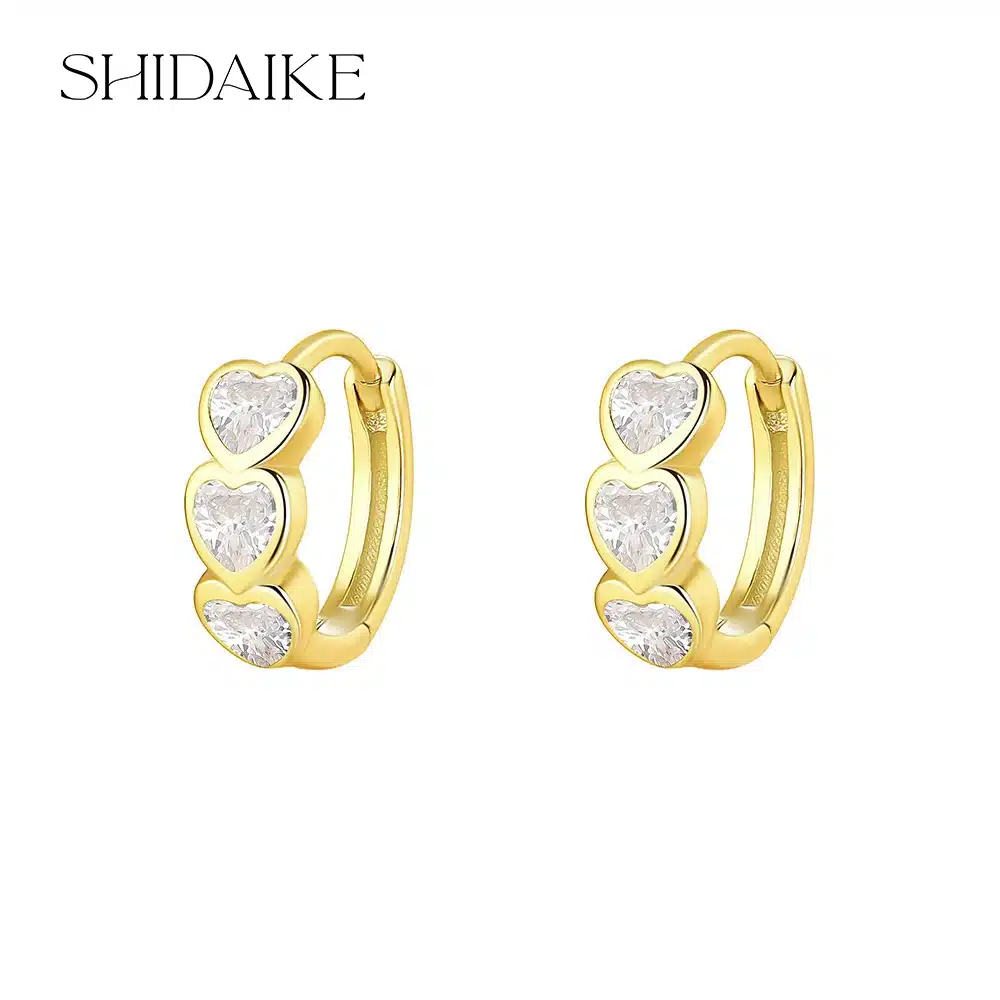 925 Sterling Silver Fine Hoop Earrings Simple Versatile Geometric Ear Buckles Heart Zircon European American Style