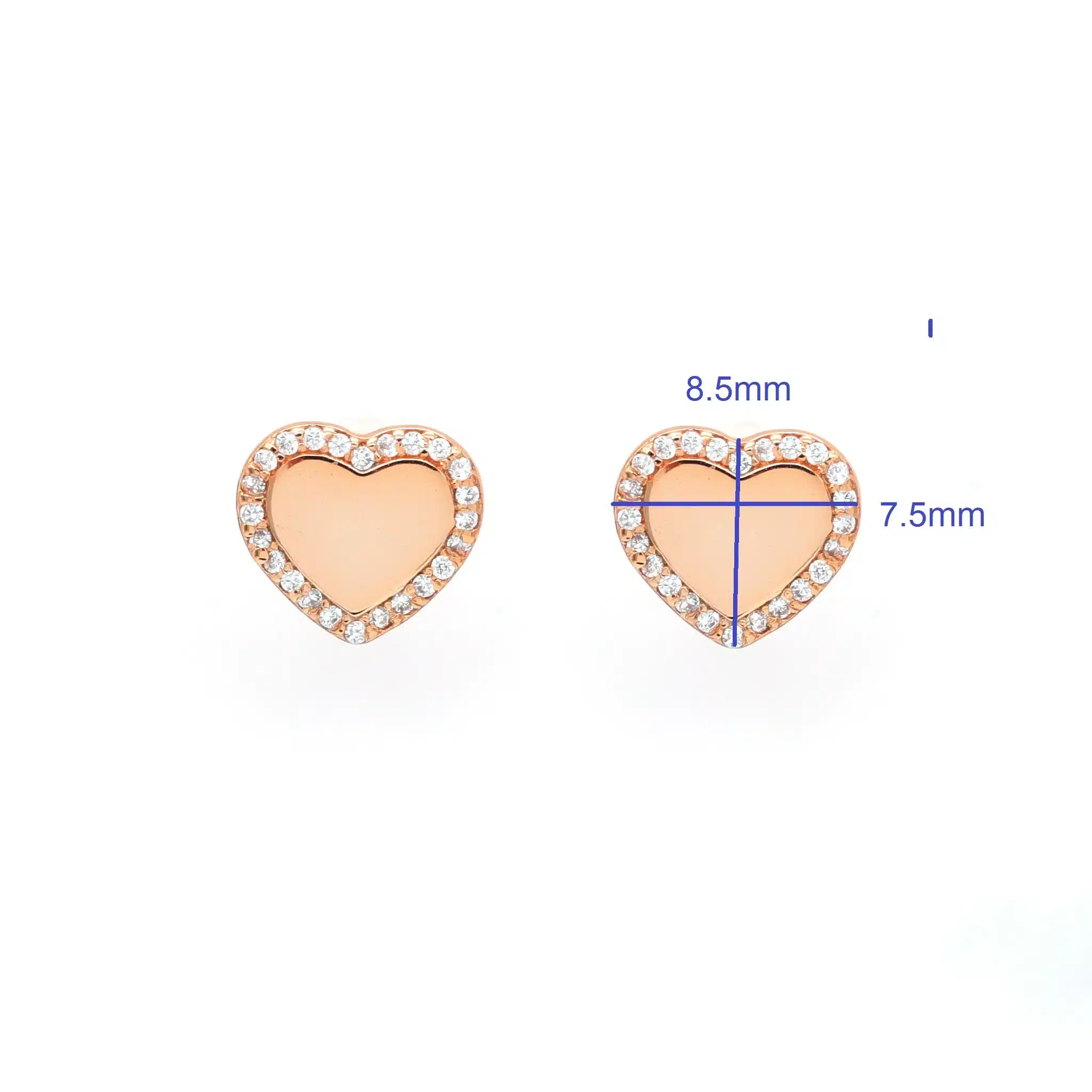 925 Sterling Silver Heart Silver Stud Earring Cubic Zirconia Rose Gold Earrings Silver Heart Stud Earrings Sparkling for Women