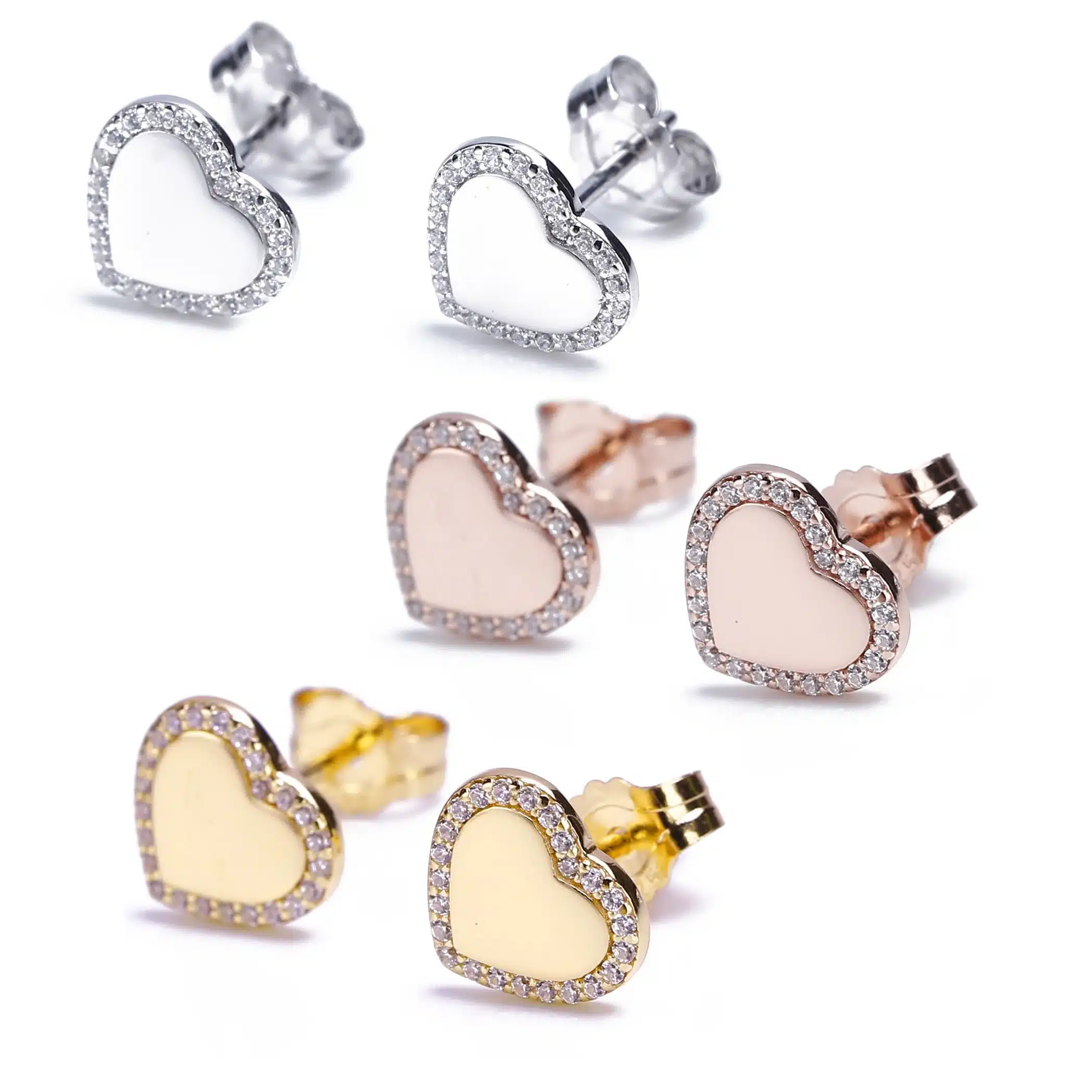 Silver Custom Jewelry 925 Sterling Silver Earrings Stud Geometric Jewelry Plain Heart Stud Earrings Women Gold Plated Jewelry