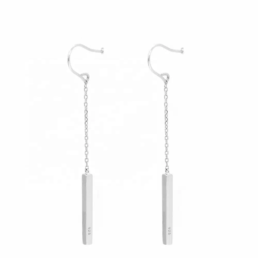 925 Sterling Silver Jewelry Bar Polished Earrings Fashion Drop Earrings Fastening Fish Hook Jewelry for Women