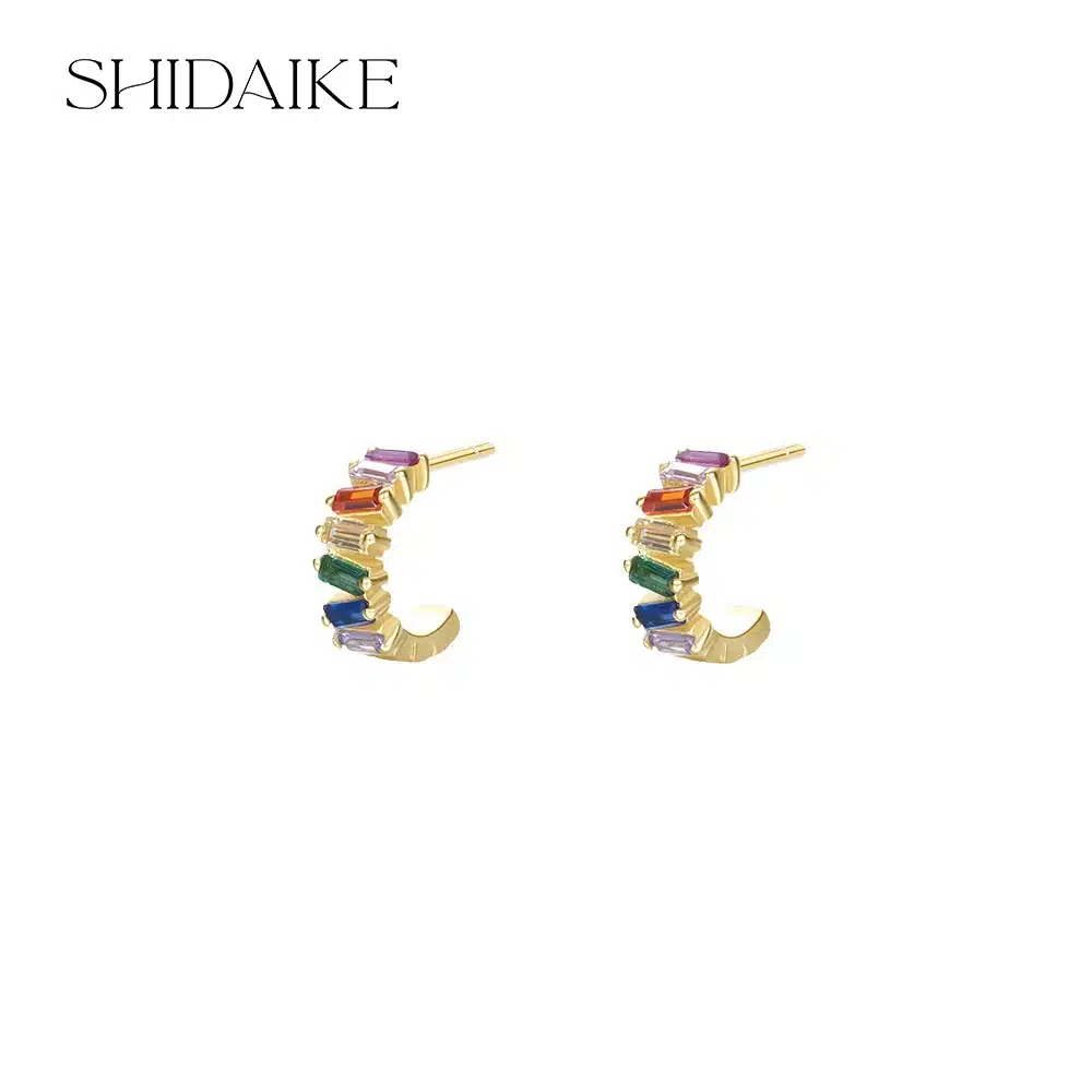 925 Sterling Silver Niche Ins Style Earrings Rainbow Zircon European American Retro Elegant Cross-Border Stud Design for Gift