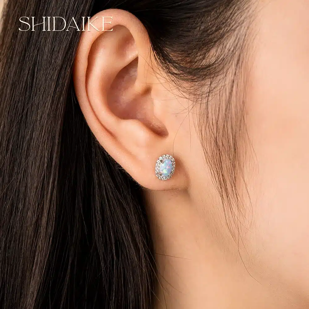 Key attributes Jewelry Main Material:925 SILVER Earrings Type:Stud Earrings Main Stone:Opal Plating:Rhodium Plated Style:Classic Shape:Geometric Occasion:Anniversary, Engagement, Gift, Party, Wedding