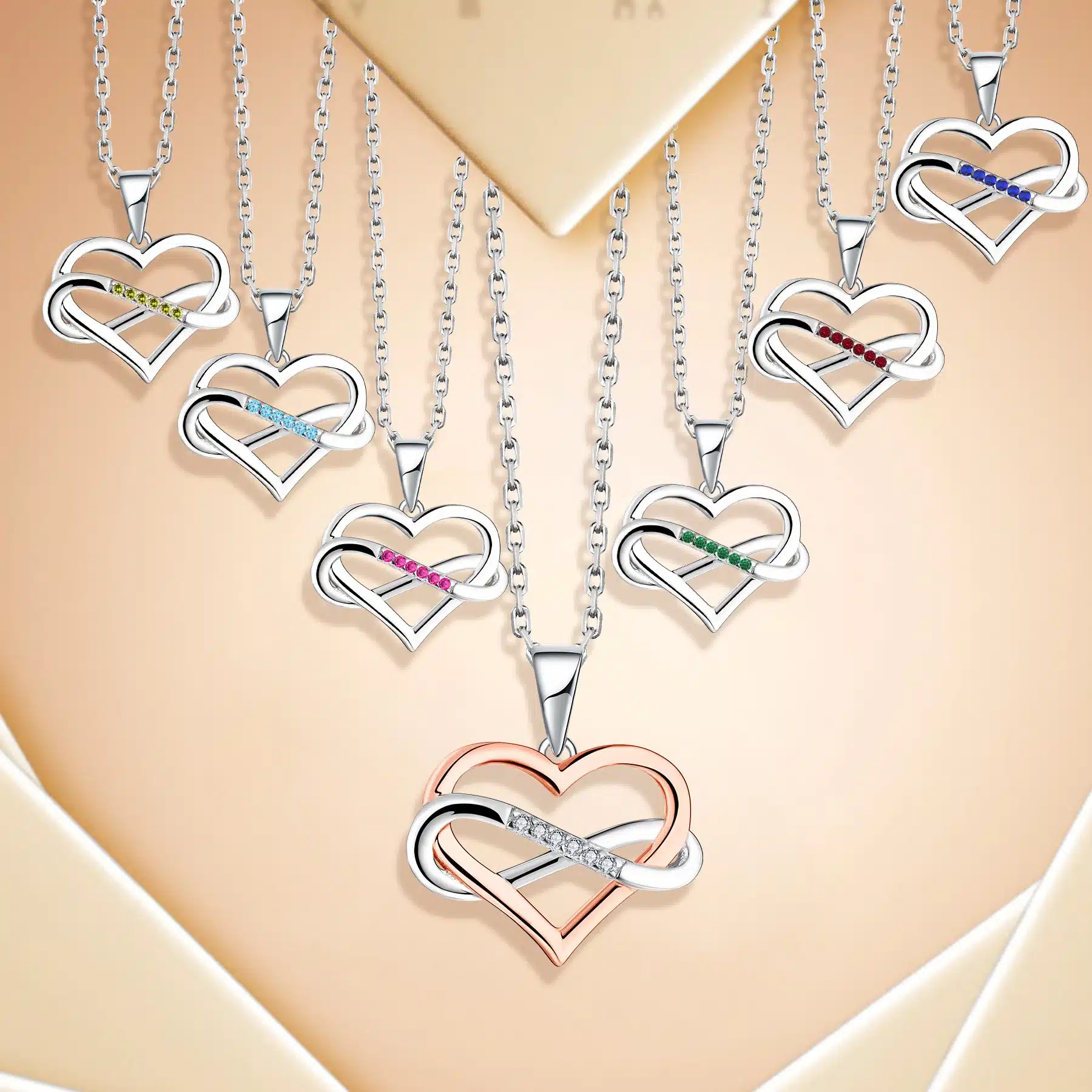 Valentine’s Day Romantic Gift Infinity Heart Pendant 925 Sterling Silver Rhodium Plated Lovers Zircon Heart Pendant Jewellery