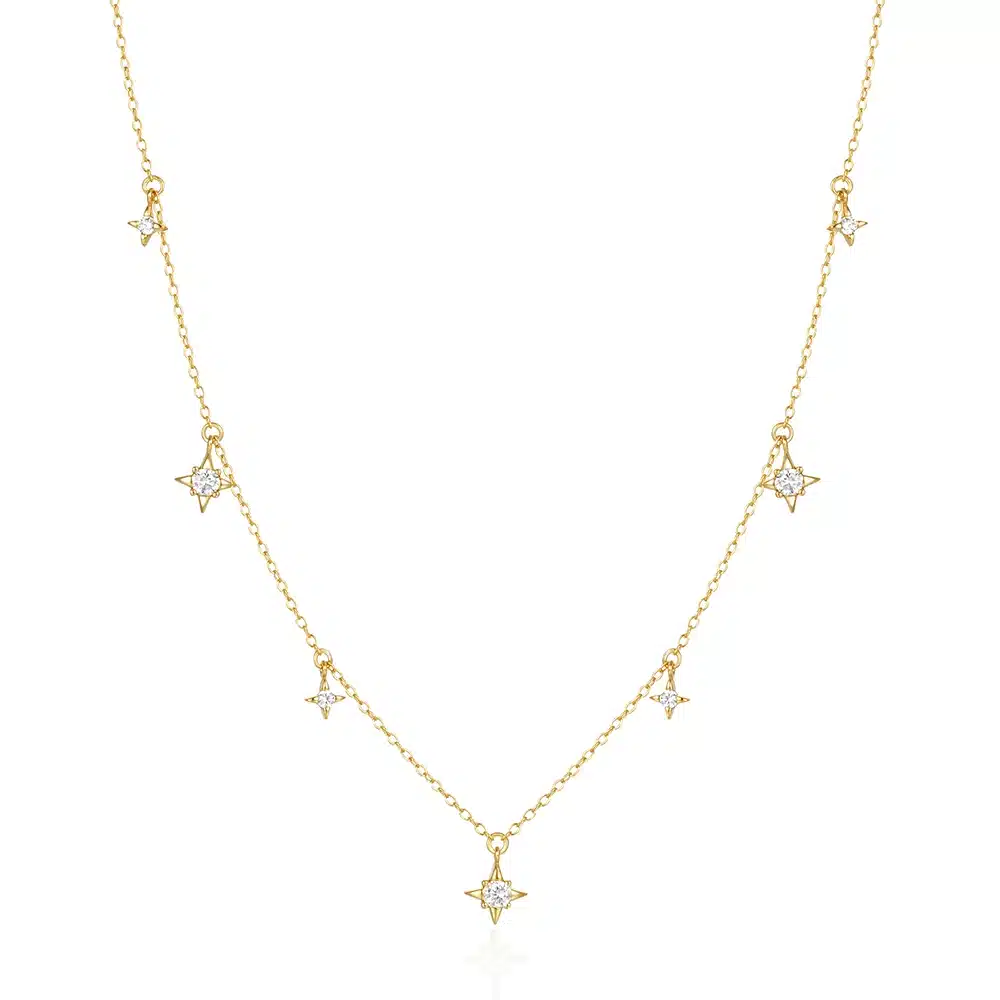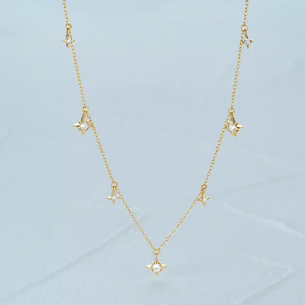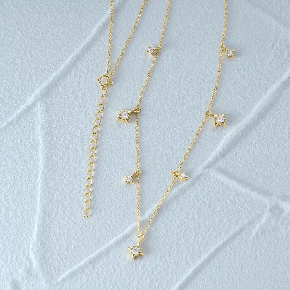 18K Gold Plated 925 Silver Dainty CZ Stone Zircon Paved Small Moon Star Tassels Necklaces for Women Jewelry