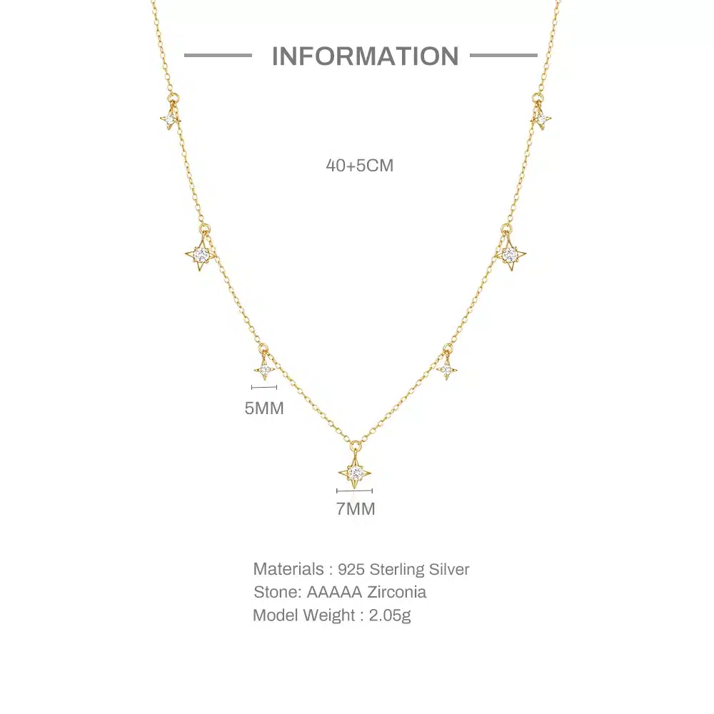 925 Sterling Silver Star Diamond Tassel Charm Necklace 18K Gold Plated Cubic Zircon Necklace Jewelry for Women