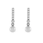 925 Sterling Silver Women Jewelry Rhodium Plated Pave CZ Stud Pearl Drop Earrings