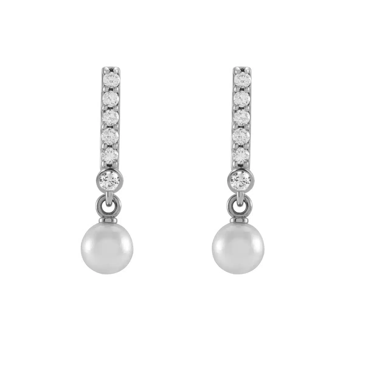925 Sterling Silver Women Jewelry Rhodium Plated Pave CZ Stud Pearl Drop Earrings
