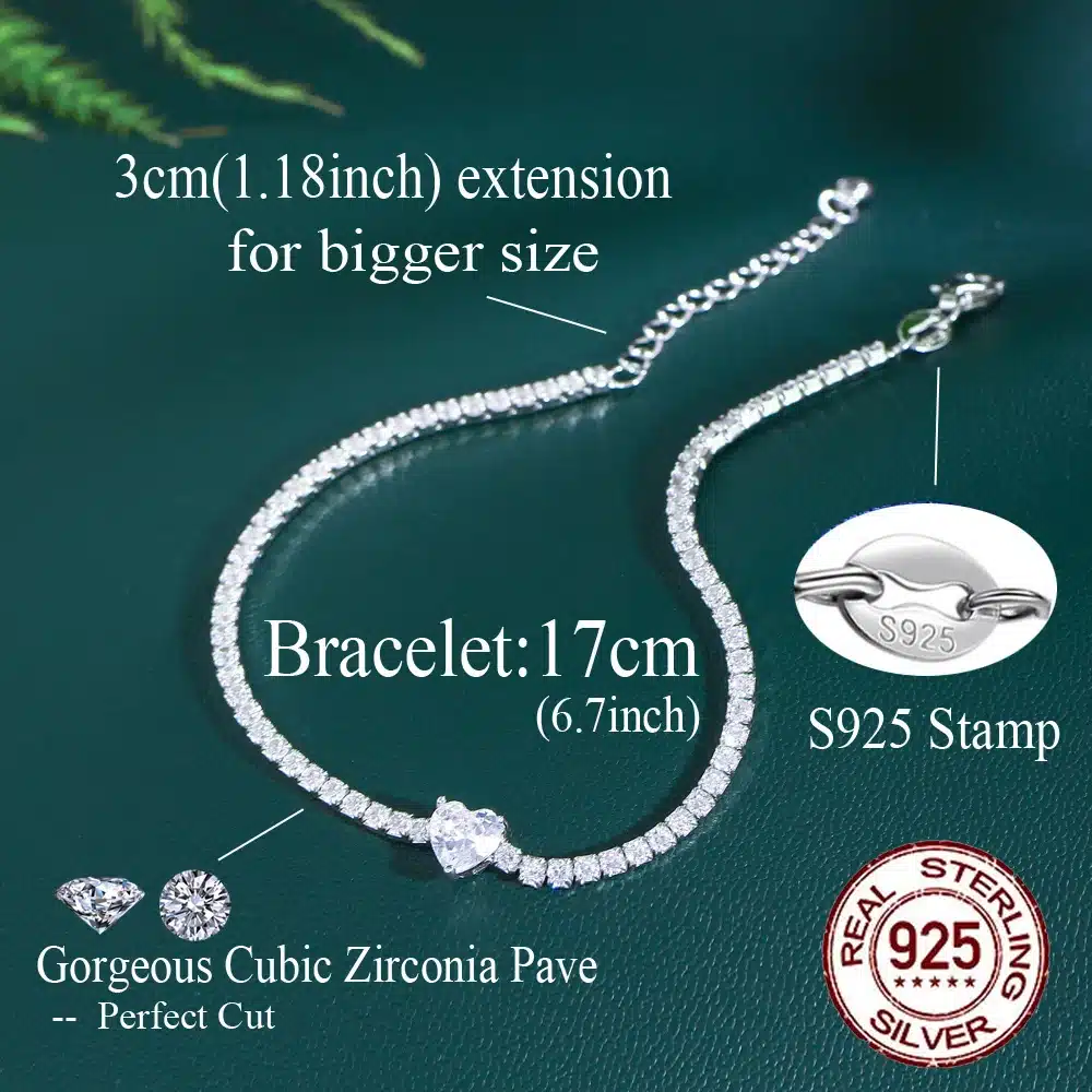 Be the first to review “Adjustable Cubic Zirconia 925 Sterling Silver Heart Charms Bracelets Bangle for Women Bulk Wholesale Lady Fashion Jewelry” Cancel reply