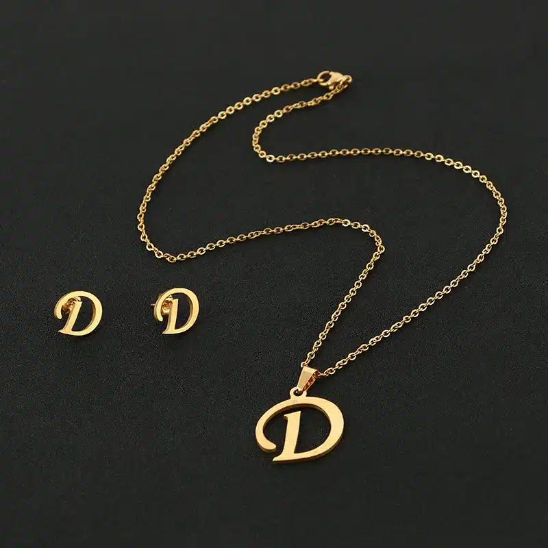 Alphabet Pendant and Stud Earrings Set Yiwu Designer Jewelry Cheap Letter Shape Jewellery Set