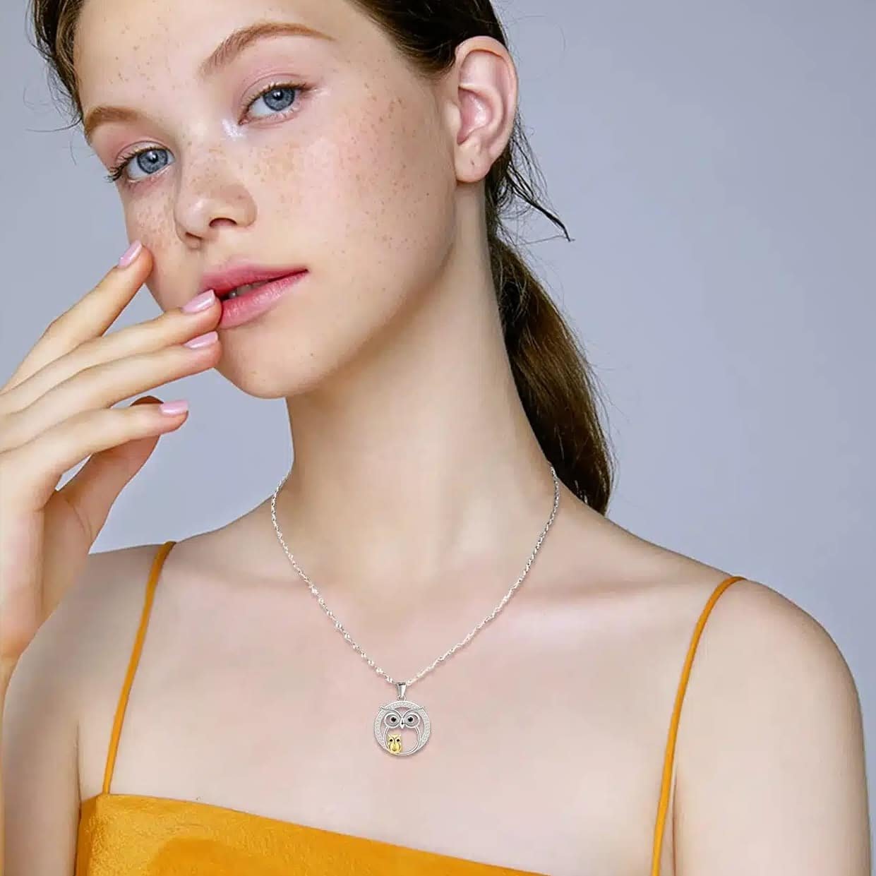 Amazons Best Sellers Round Necklaces 925 Sterling Silver Mother Child Owl Necklace