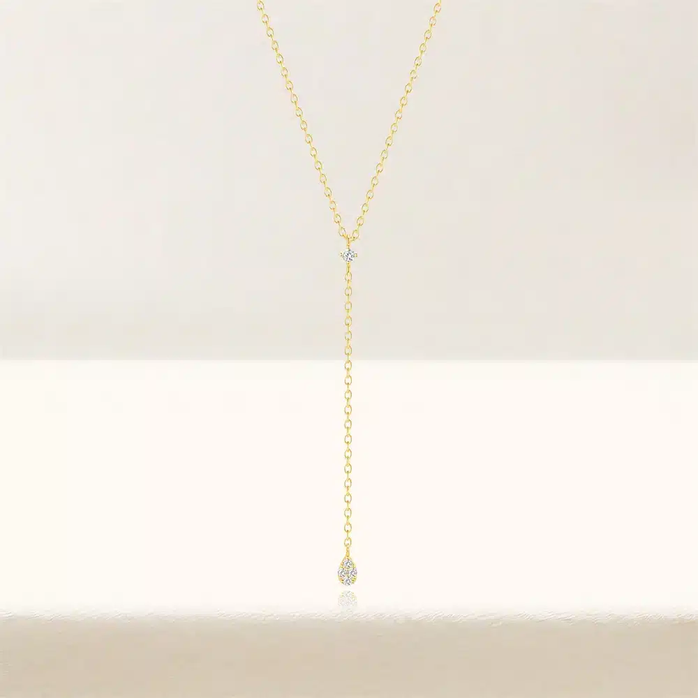 Arier Fashion Women Jewelry New Design 18k Gold Plated Minimalist 925 Sterling Silver Water-drop CZ Charm Y-shaped Necklace