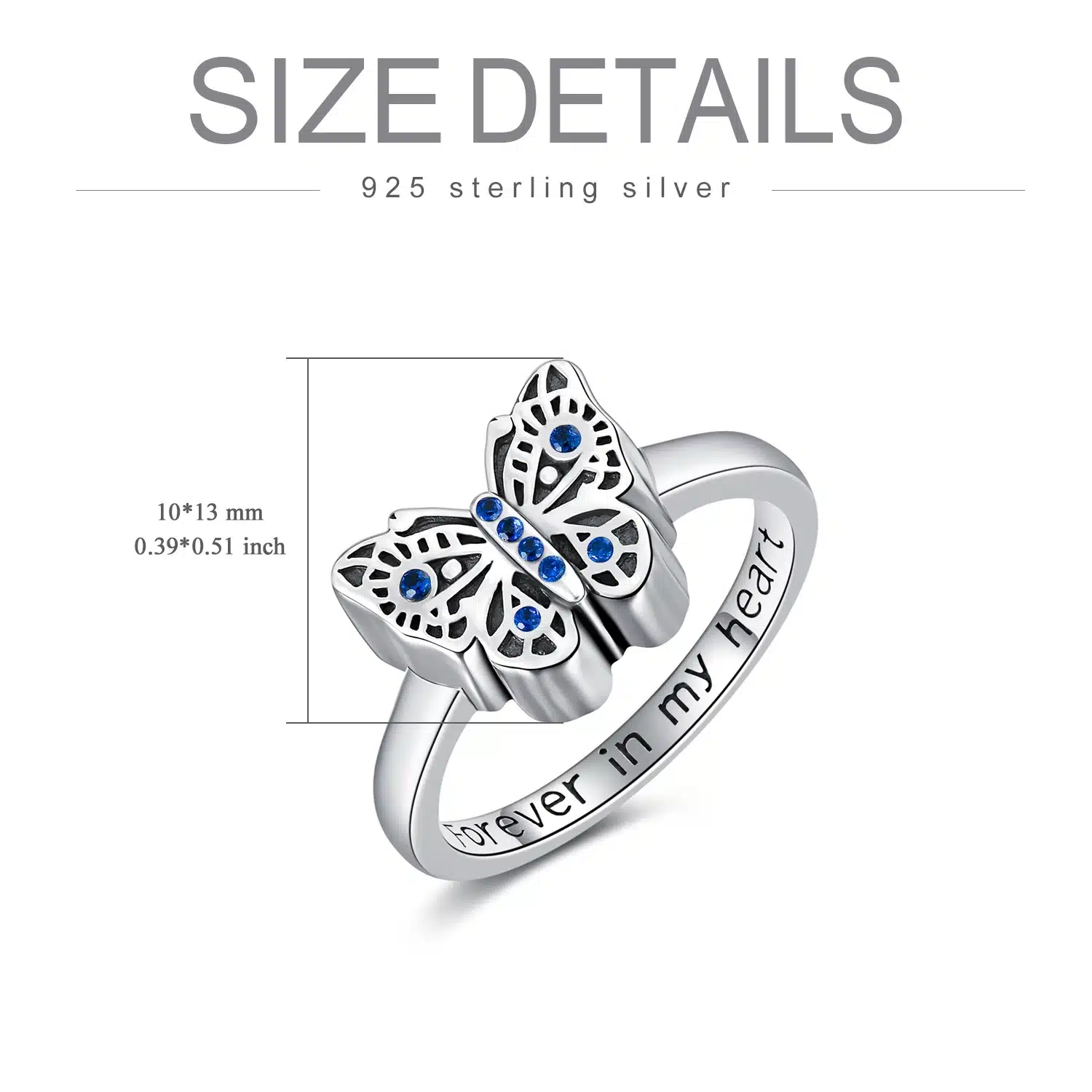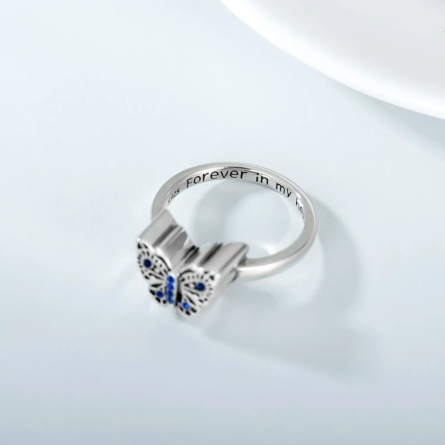 Ashes Jewelry Custom 925 Sterling Silver Cubic Zircon Butterfly Cremation Urn Ring