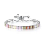 Baguette Zircon Slider Chain Bracelet Adjustable Colorful Cubic Zircon CZ Stone Tennis Chain Bracelet