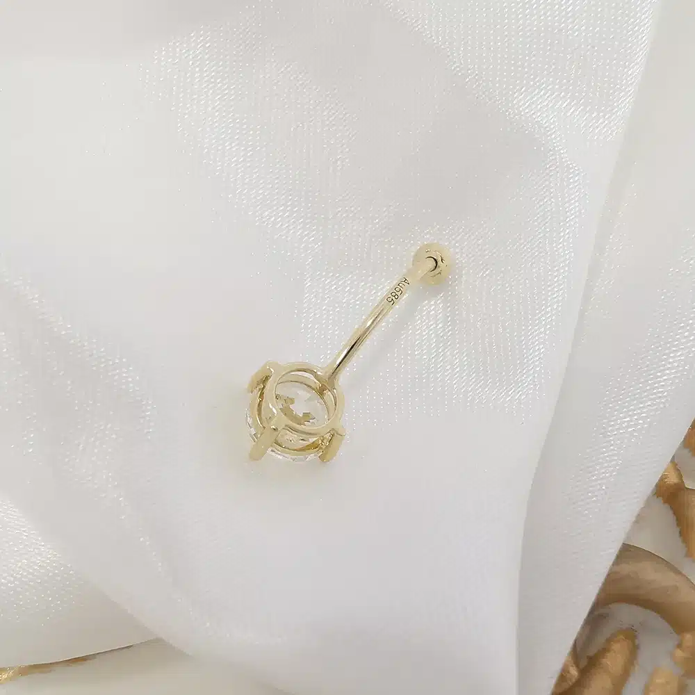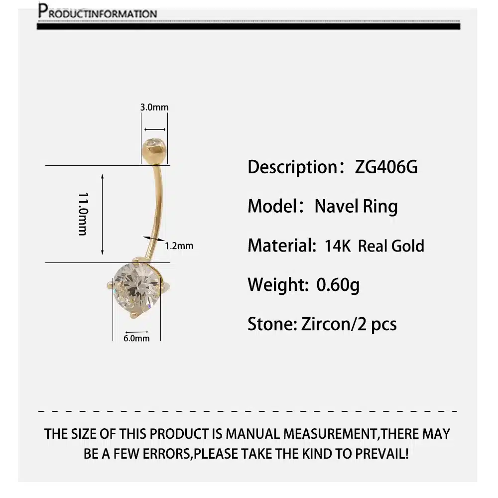 Belly Rings 14K Solid Gold Belly Navel Ring Piercing Jewelry Round CZ Screw Button Body Jeweley