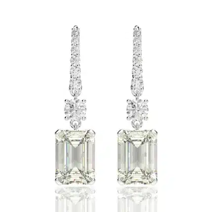 Top End Quality 8*11mm Emerald Cut 8A G Color White Zirconia Diamond 925 Silver Hook Earring