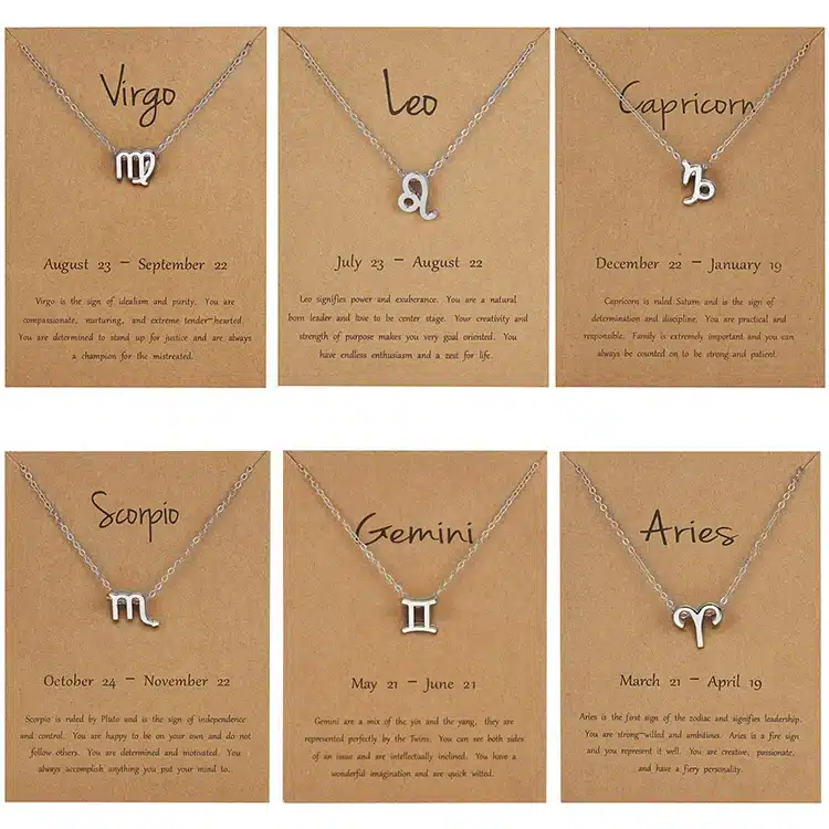 Birthday Gift Gold Plated 12 Zodiac Sign Pendant Wish Card Charm Gold Chain Choker Astrology Necklace Jewelry for Women