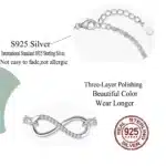 Hypoallergenic Women’s Party Jewelry S925 Sterling Silver Infinity Symbol Thick Chain Link Bracelet with White Zircon Stones