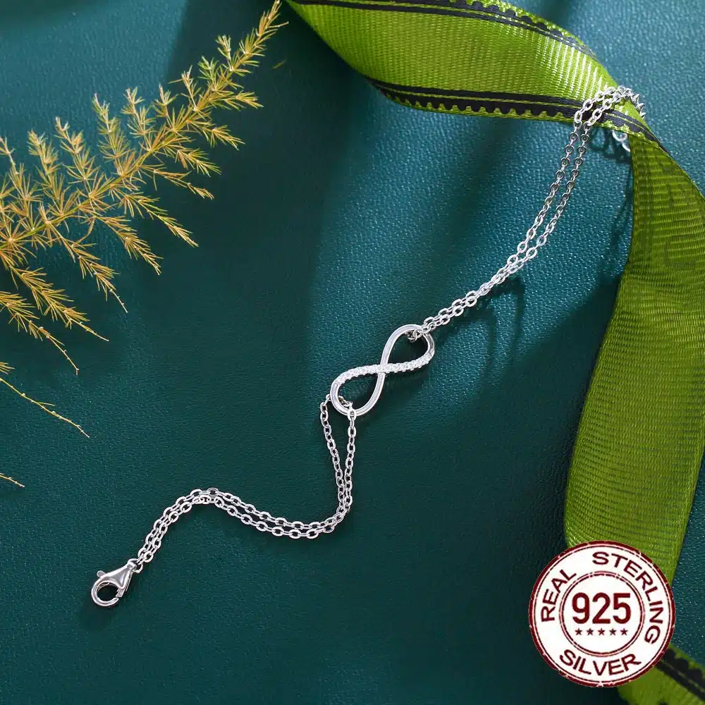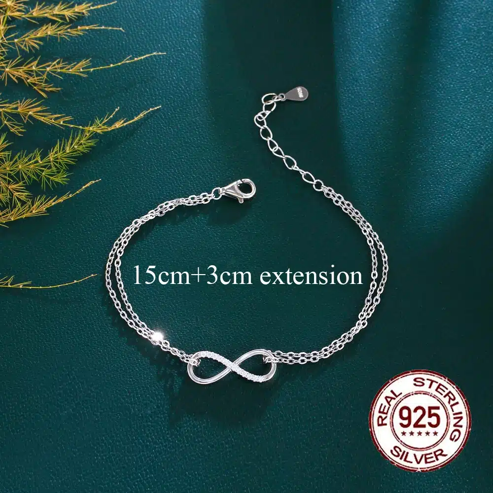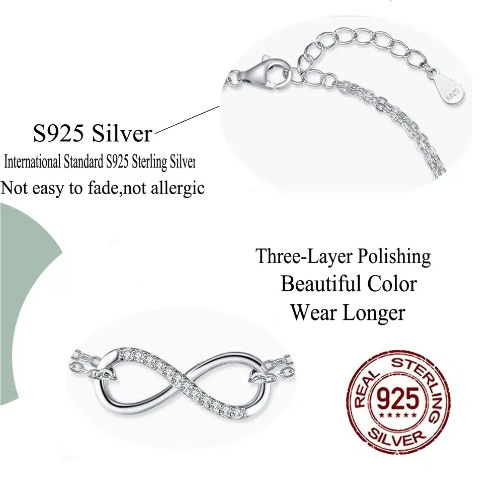 Key attributes Plating:Rhodium Plated Bracelets or Bangles Type:Chain & Link Bracelets Jewelry Type:Bracelets, Bangles Shape:Infinity Symbol Inlay technology:Micro insert Main