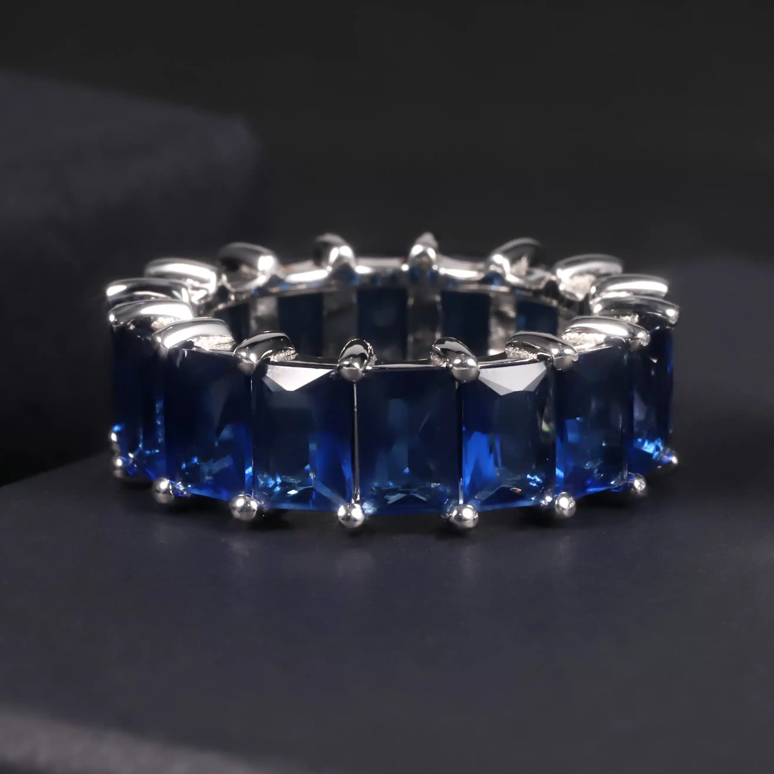 Be the first to review “C7532 Fine Jewelry Factory Excellent Finishing 925 Sterling Silver Full Baguette Cut Blue Sapphire Eternity Band Ring” Cancel reply