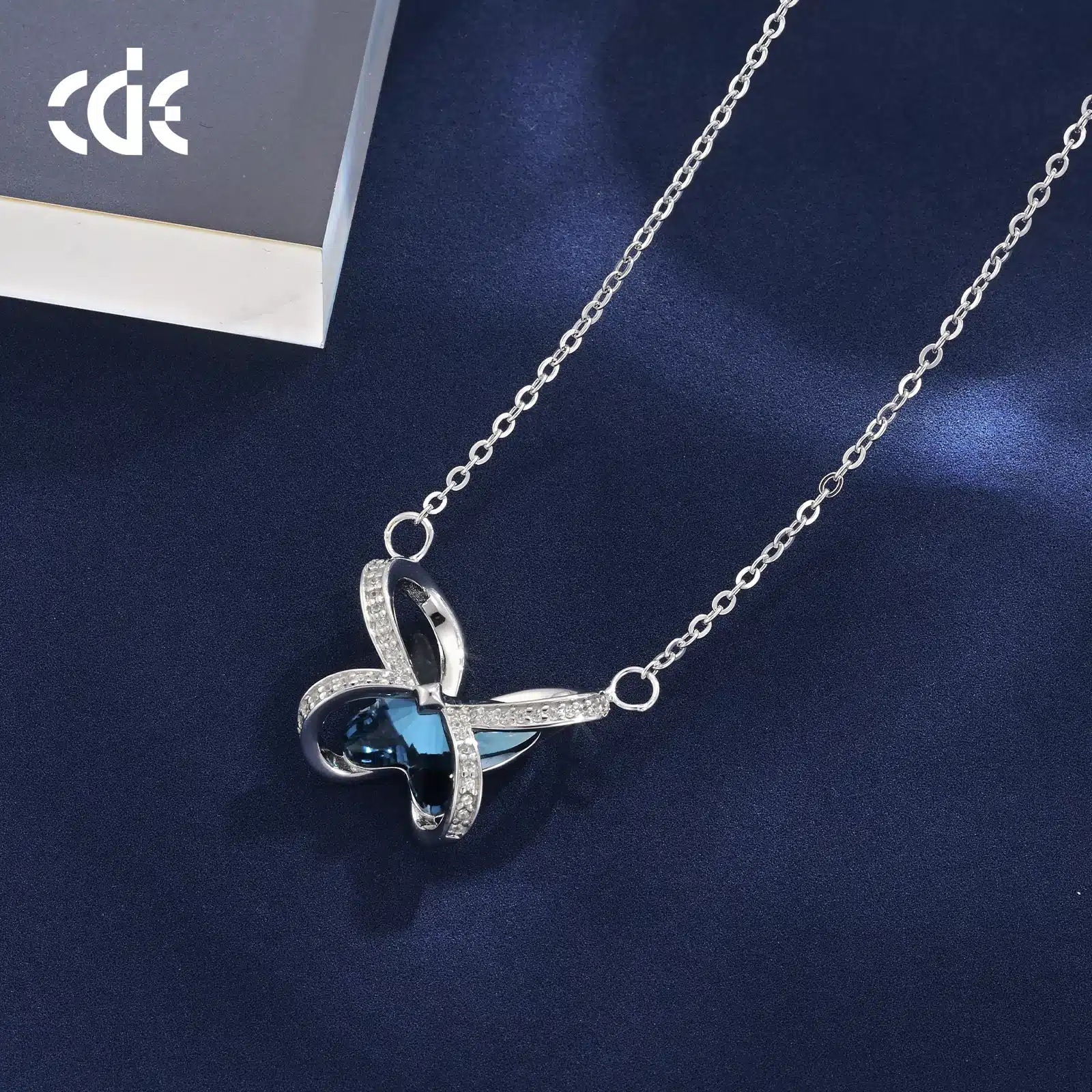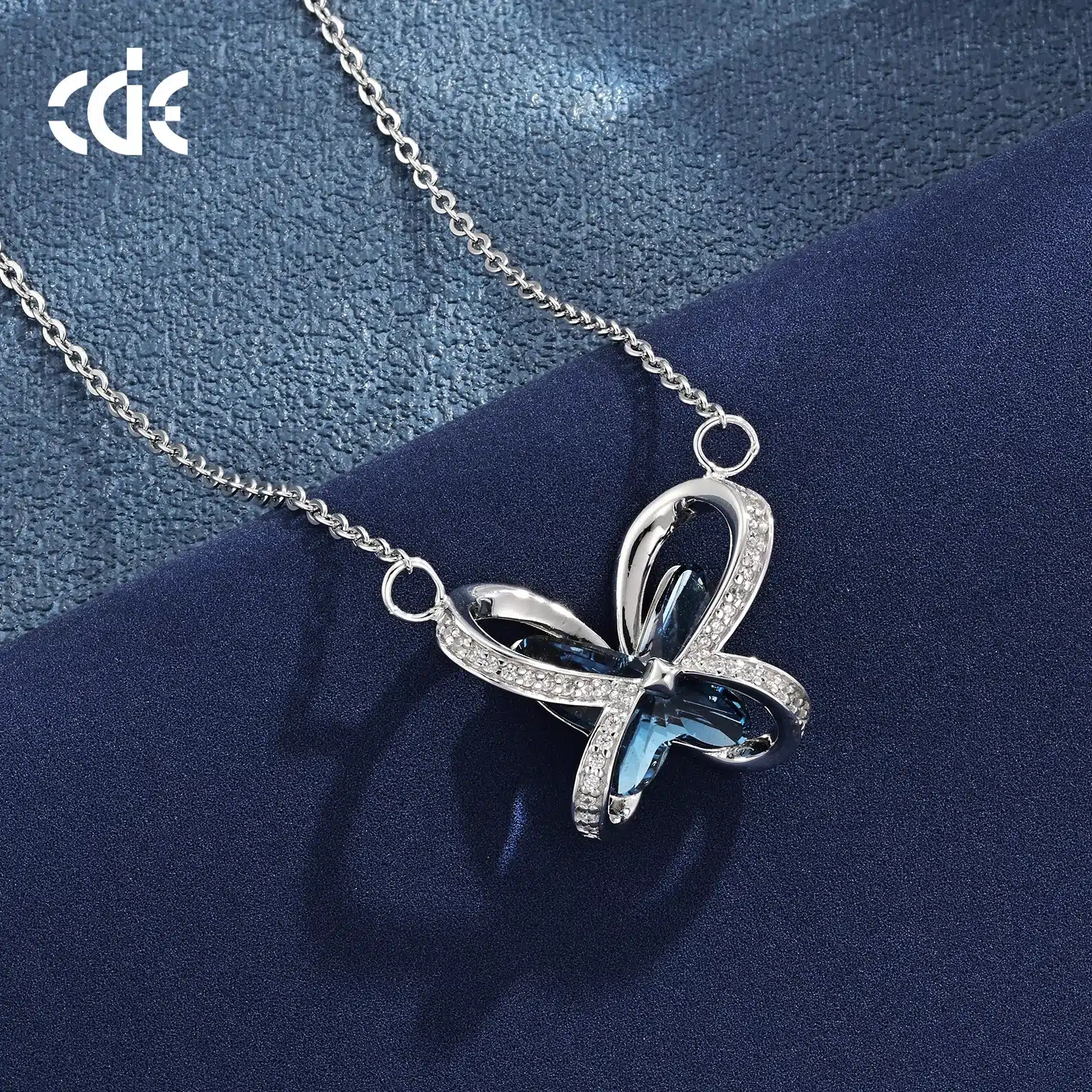 Be the first to review “CDE Custom Design OEM Jewelry 925 Sterling Silver Blue Crystals Necklace Wholesale Sparkling Cubic Butterfly Design Necklace” Cancel reply