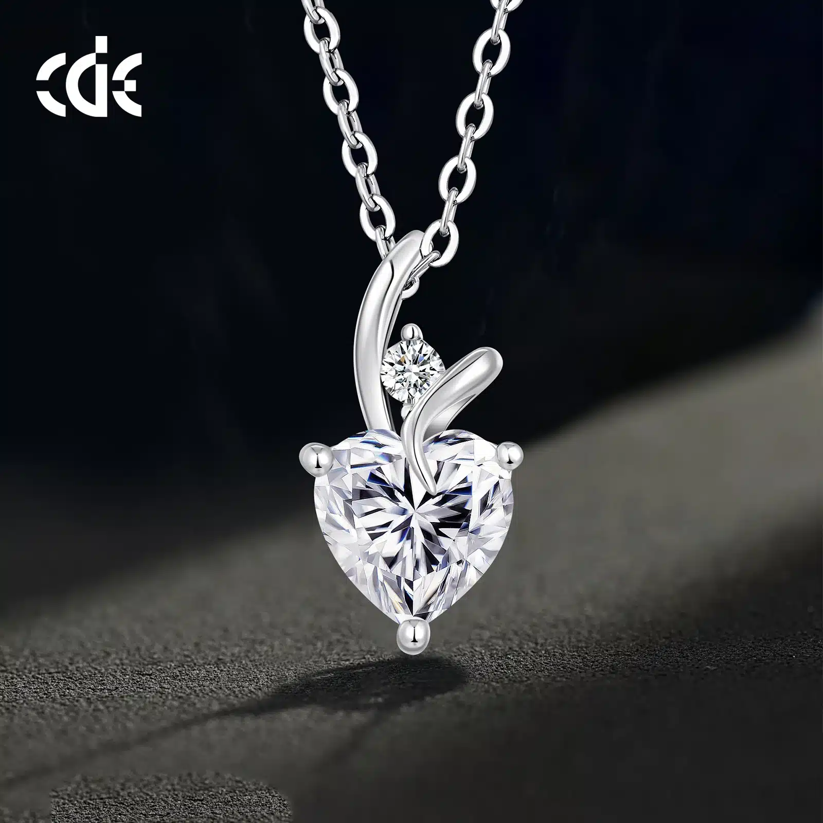 CDE Luxury Lab Grown Real Diamond Necklace 2ct 925 Sterling Silver Heart Vvs Moissanite Necklaces