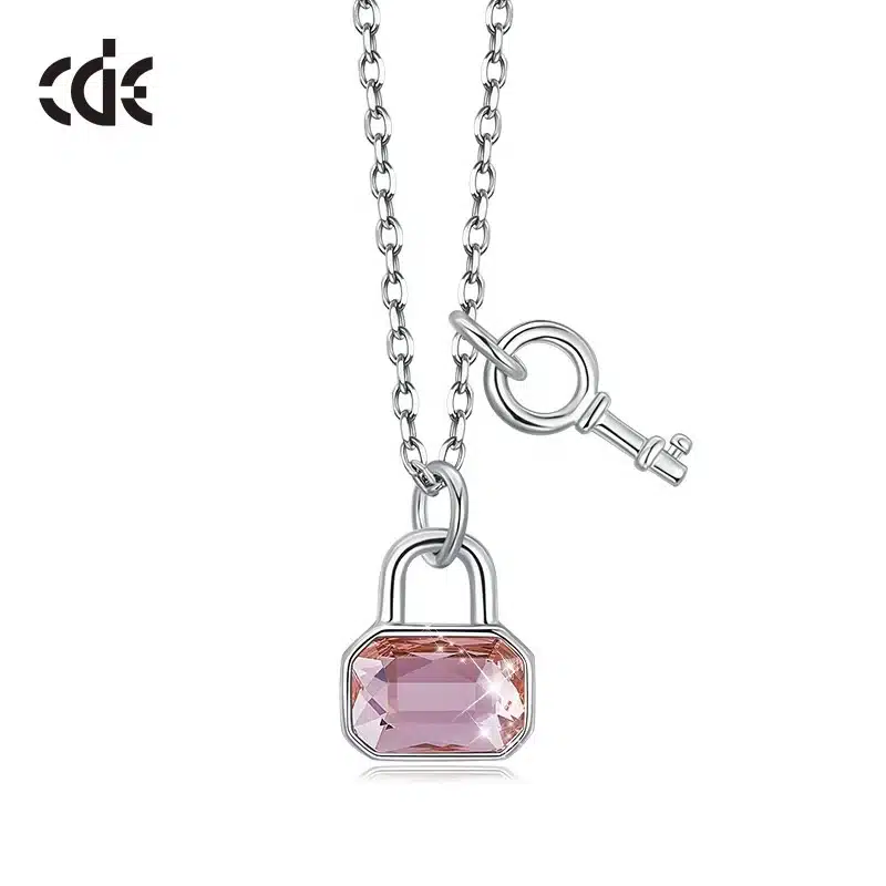 CDE Silver 925 Sterling Silver Pink Austrian Crystal Lock and Key Pendant Necklace for Women