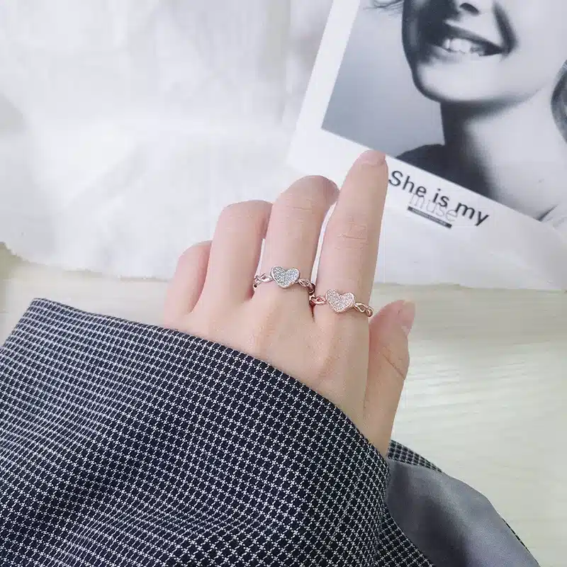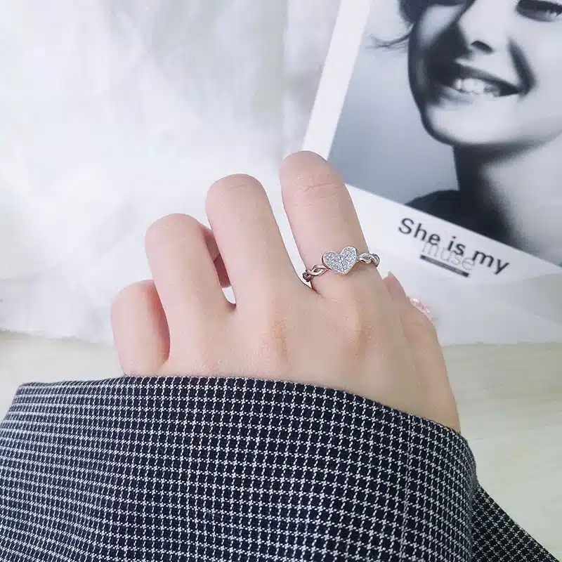 Charm Fashion New Product Using S925 Pure Silver Personalized Double Love Women’s Adjustable Ring High End Jewelry