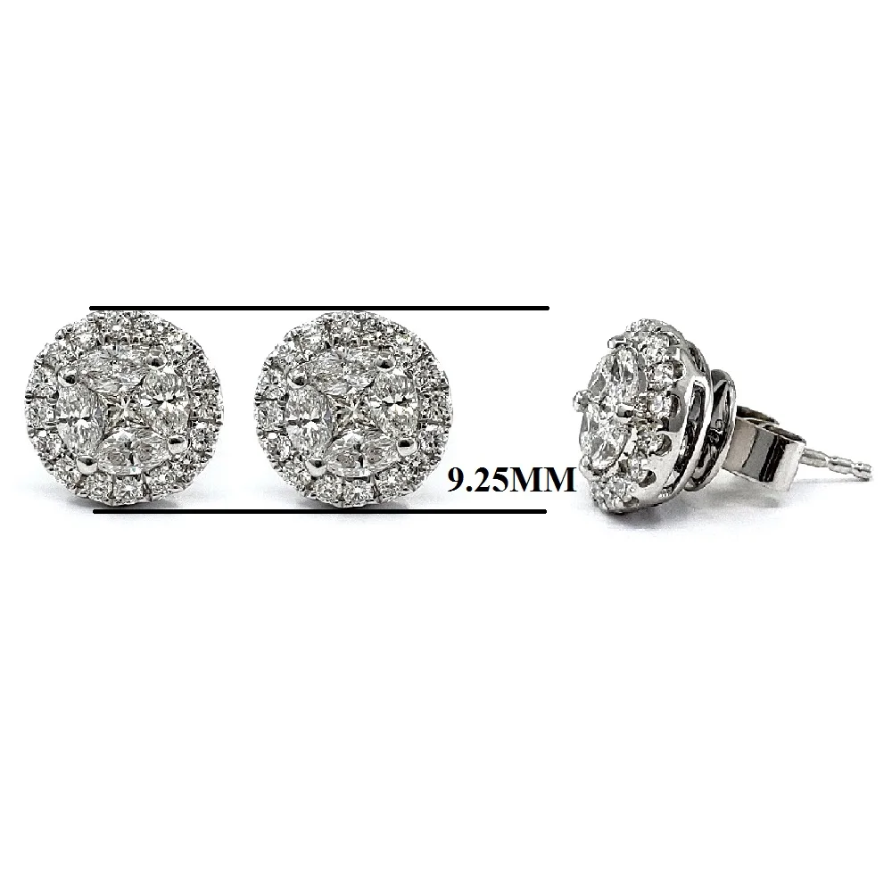 China Manufacturer Jewellery Pretty Top Quality 18k Solid White Gold Real Diamond Round Shape Beauty Studs Earring for Lady