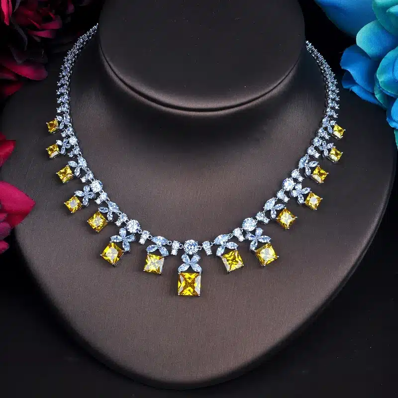 Key attributes Jewelry Main Material:brass Main Stone:ZIRCON Style:Classic Jewelry Type:Jewelry Sets Gender:Women’s Occasion:Anniversary, Engagement, Gift, Wedding, Party Plating:Rhodium Plated, Platinum