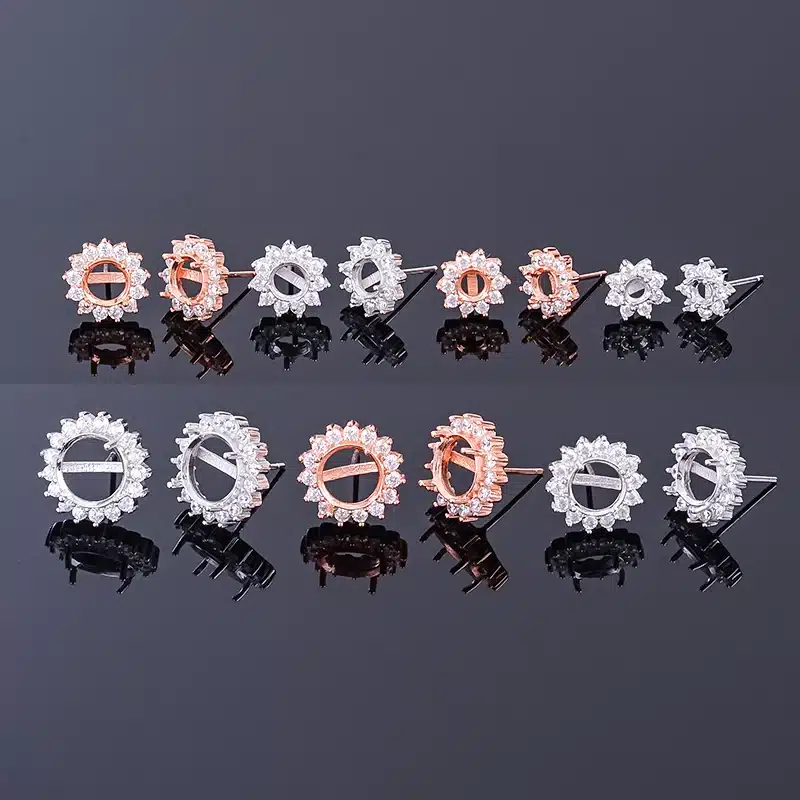 Classic Design Semi Mount Diana Stud Earring 4/5/6/7/8/9/10mm Round Cut Stones S925 Silver for Gemstone Making DIY Inlay