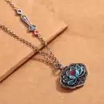 Be the first to review “Collar De Acero Inoxidable Vintage Hollow Enamel Lotus Pendant Choker Blessing Six Character Great Bright Mantra Amulet Necklace” Cancel reply